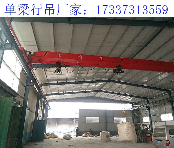 甘肅白銀單梁行吊廠家【17337313559】是生產(chǎn)制造各種起重設(shè)備的公司,主要從事門式起重機(jī)、單雙梁,龍門式,橋式,抓斗式、電磁式起重機(jī)及其他非標(biāo)準(zhǔn)起重機(jī)的設(shè)計(jì)、制造、銷售等業(yè)務(wù)。